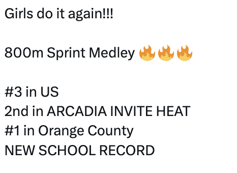 April 11, 2026 UPDATES FROM ARCADIA April 11, 2026/ JT Ayers Click HERE for Updated Team Records Click to Watch Race some coverage of the girls race Click to watch Race Click to Watch race